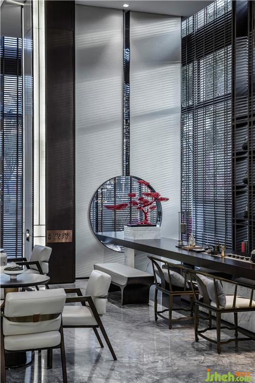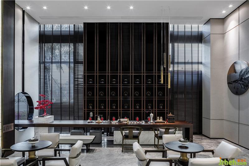 水吧空间设计呈现天然形态之美,现代元素下的中式营销中心,每一处都尽显优雅。