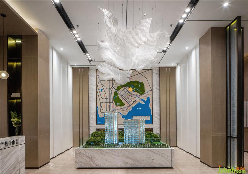 售楼处设计师结合当地近海的特色,提取了渔网作为吊饰的设计元素,抬头一瞬,仿佛可以体会到渔夫撒网那一刻对收获的渴望之情,恰似来宾到此所含的期许心情,以及对未来美好生活的憧憬。