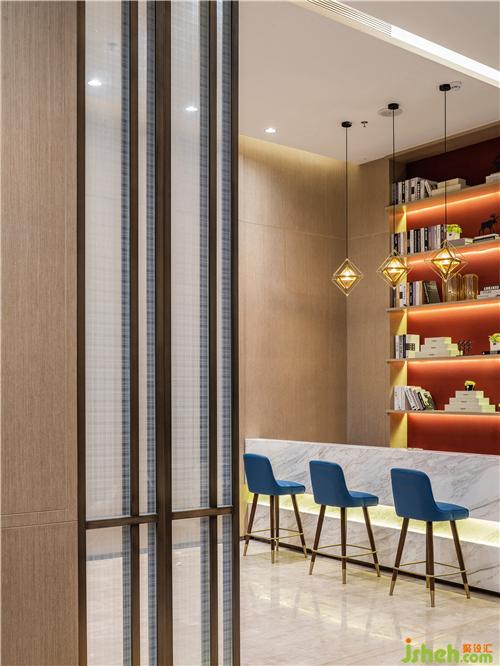 公共洽谈区选用大面积木饰面,是设计师以当代艺术手法呈现出当地独特的地域文化,于不知不觉中传递出浑然天成的自然气质。