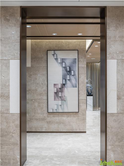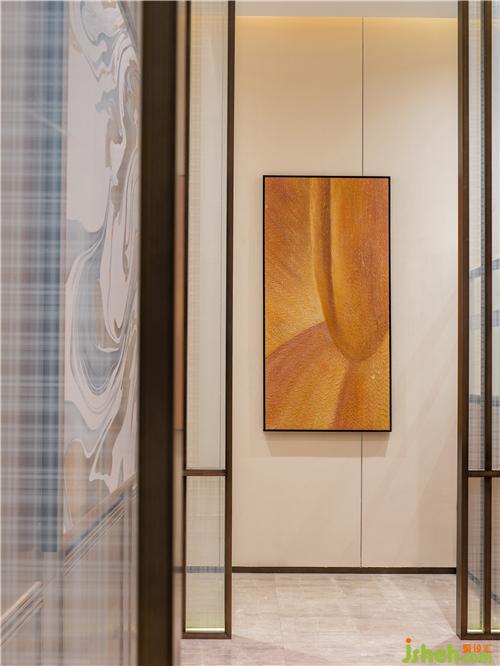 墙面大理石与墙面硬包材质,一刚一柔,于空间中达到微妙的平衡,碰撞出设计的深度。