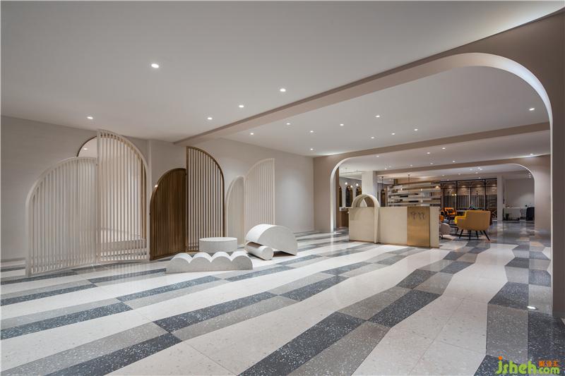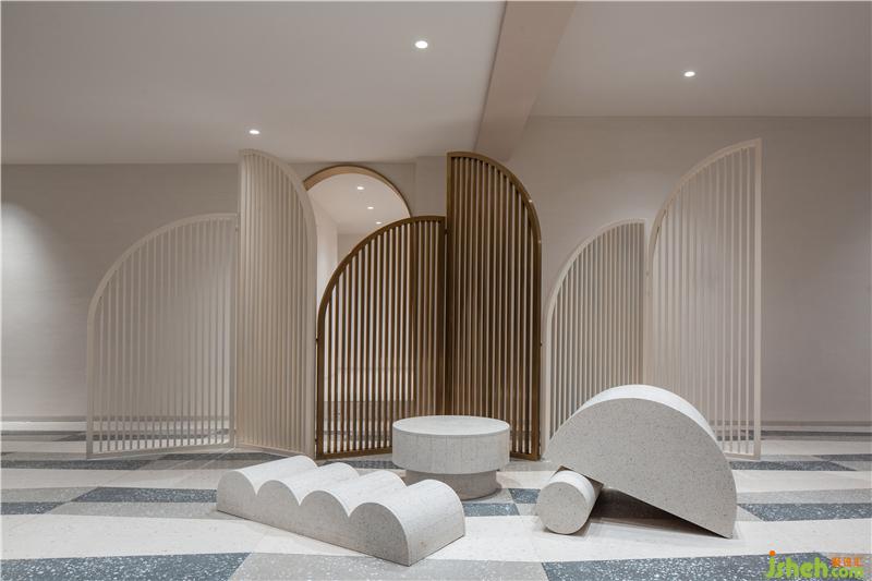 纵观历史,作为建筑艺术代表元素之一的“拱“,一直是传承和在发展的典型,它蕴含着前人对美感的追求和技术的创新。项目设计以“拱”的形态为主语言,以不同形态和材质贯穿于整个设计,以提升空间表述语言的抽象性和统一性。