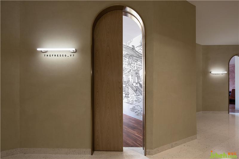 从艺术沙龙的开放空间到相对独立的洽谈室和餐厅,设计将东方的意境融入西方的艺术环境,摩登表现手法里处处隐藏着寓意致敬古典艺术的巧妙心思。