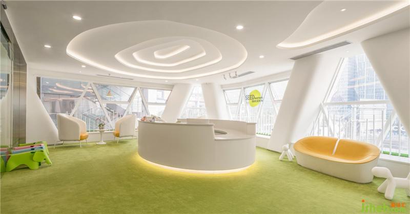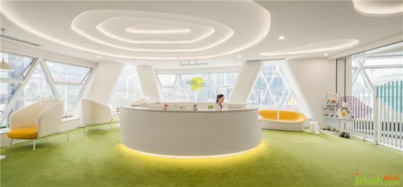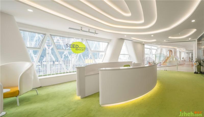 拾“seed”萌芽之意,取logo的“弧”形元素,结合整个建筑外观的框架,我们结合教育品牌理念希望能提供温暖舒适轻松自然的空间环境给每一位小朋友和家长。