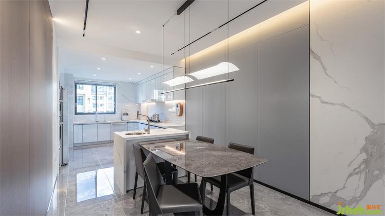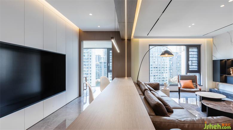 设计师采用简约明朗的线条,将空间进行了合理的分隔。开放式的客室内设计师厅设计给人以通透之感,避免视觉给人带来的压迫感,可缓解业主工作一天室内设计师的疲惫。