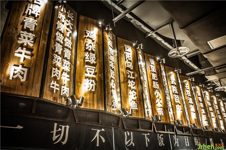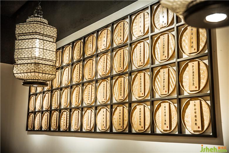 我们用3D印染的山水叠帘,错落有致的挂在D区的两排卡座之间,保证了客户的用餐私密性,墙上立体造型采用了筲箕加木牌菜品的形式。进一步点缀其主题特色。