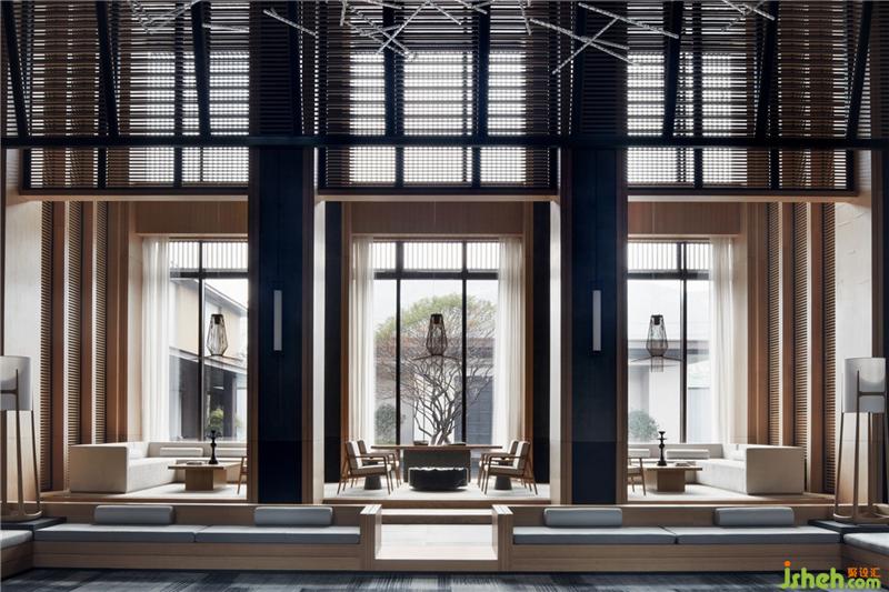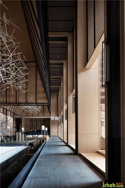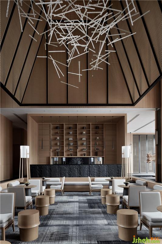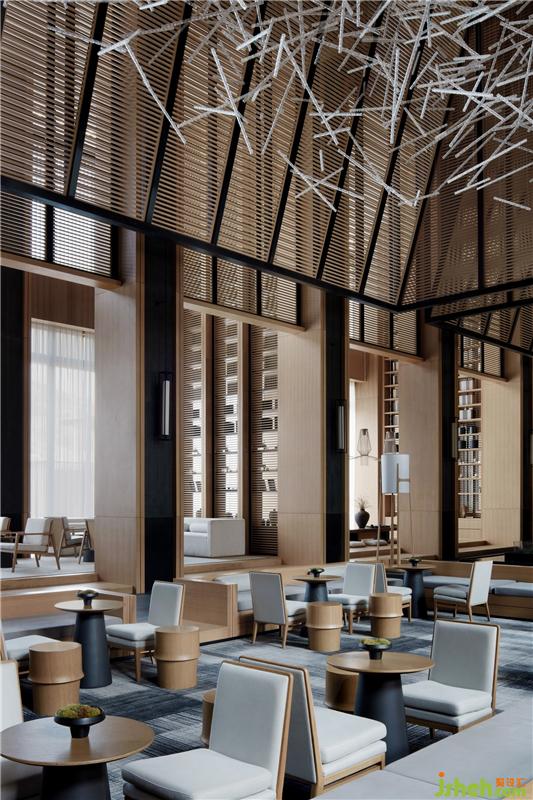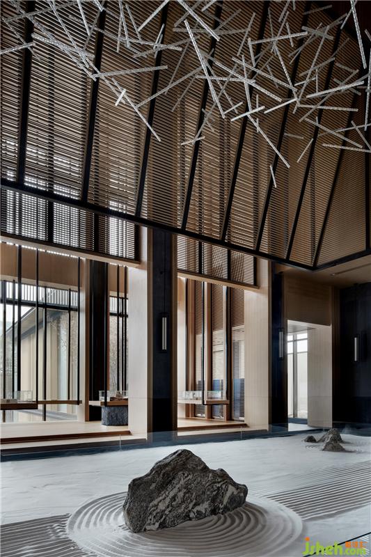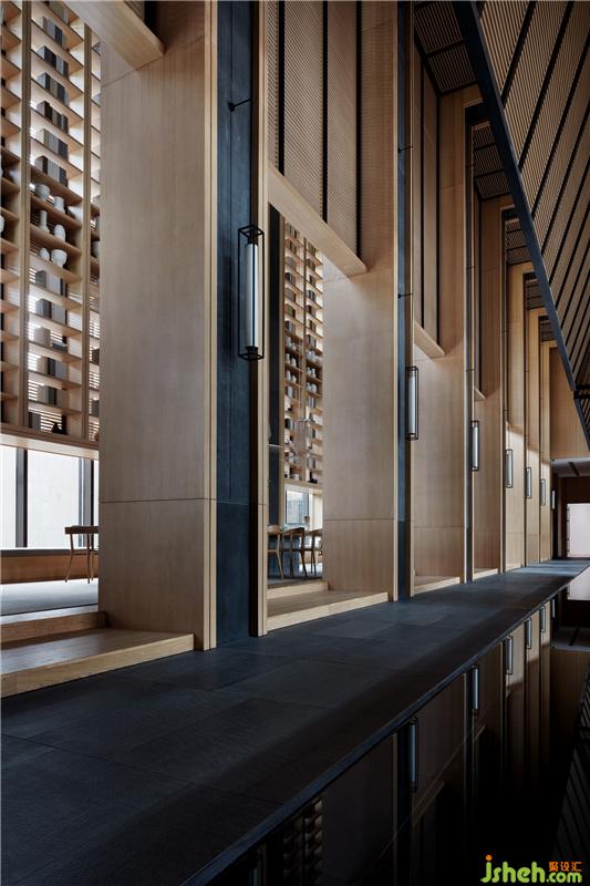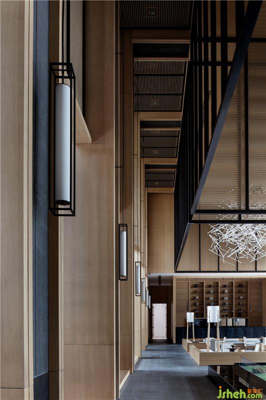 取自汉阙造型的悬置木构架和通体落地格栅巧妙的铺陈开来、构成各个功能区域的分隔墙体。柱式阵列将空间的动静凝于自身,于光影变幻之中传递或古老、或现代的美学意蕴,亦体现出东方之境所独有的尊崇感和仪式感。装修公司