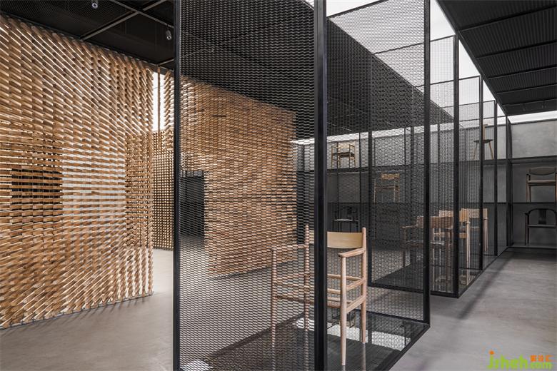 深圳器筑舍工作坊所展厅设计在空间位于深圳艺展中心,由上世纪80年代遗留的工业厂房改造而成。工作坊用以激发设计师活力与创意并专供原创家具研发,同时也是一处对外提供原创家具陈设及相关家居衍生产品的复合展示空间。