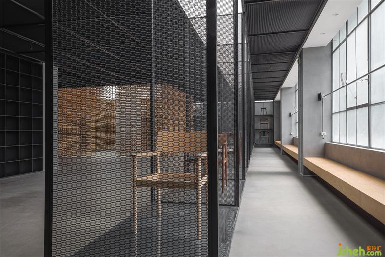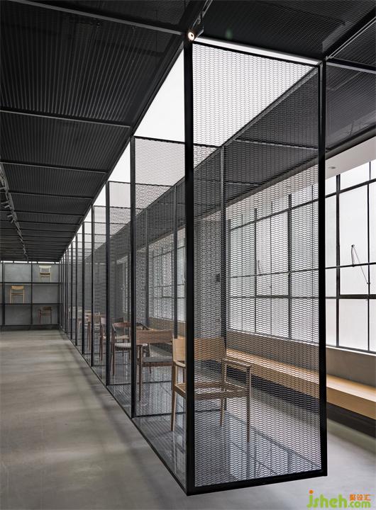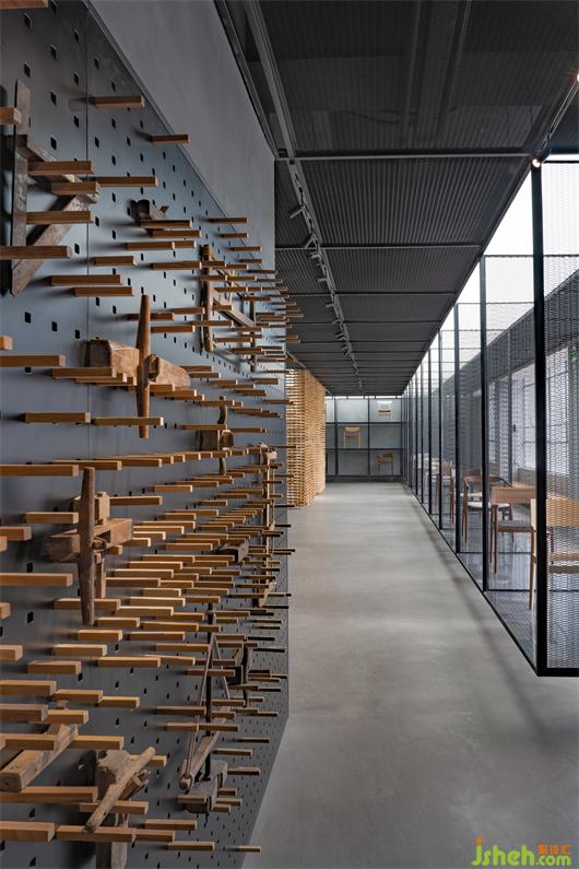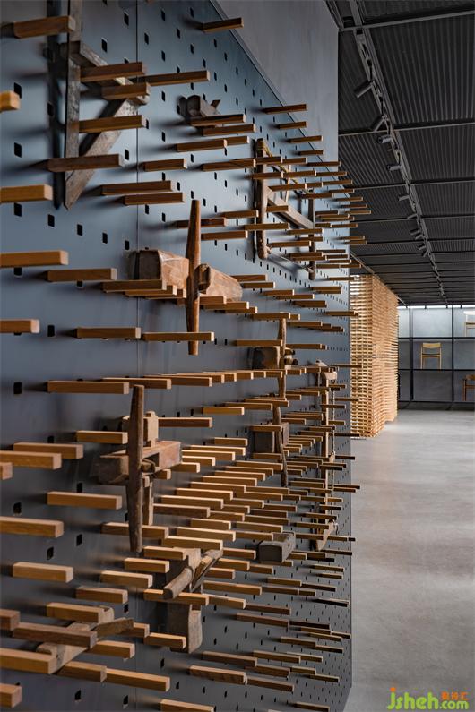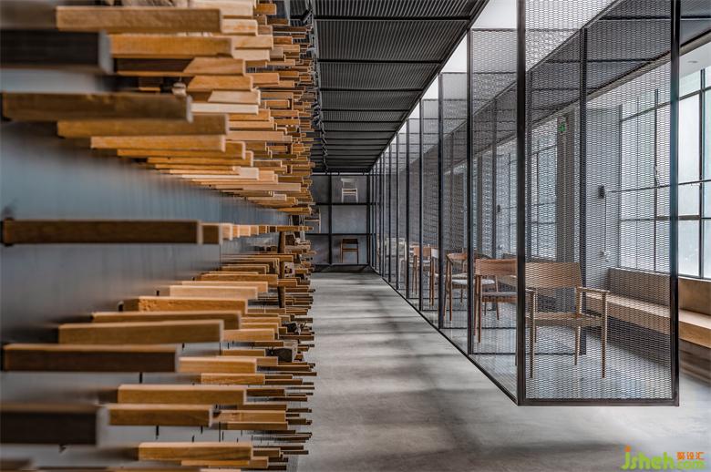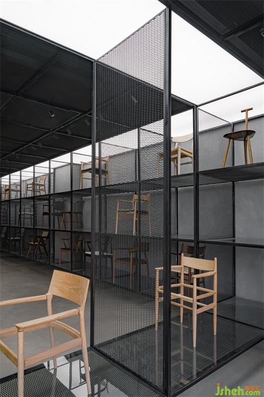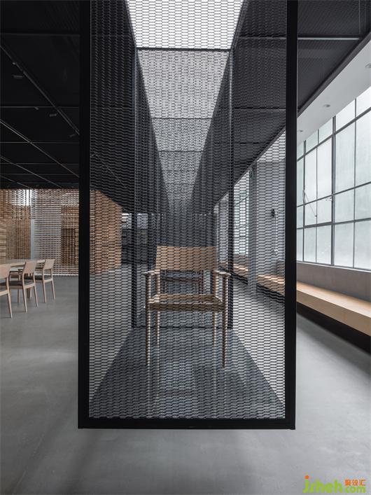 光线由中心部位透过巢网向四周扩散开来,让空间进入类似生命体的呼吸过程,并获得生命涌动的形态变化。展厅设计为了更明确地烘托“巢”的精神性,周边的展览空间被刻意压低了明度,让光线以缓慢渗入的方式从中心区域向整个空间区域扩散,气息随光线的渗透呼进呼出,形体意象则随着光影变化虚实交错,使空间充盈生机与灵性。