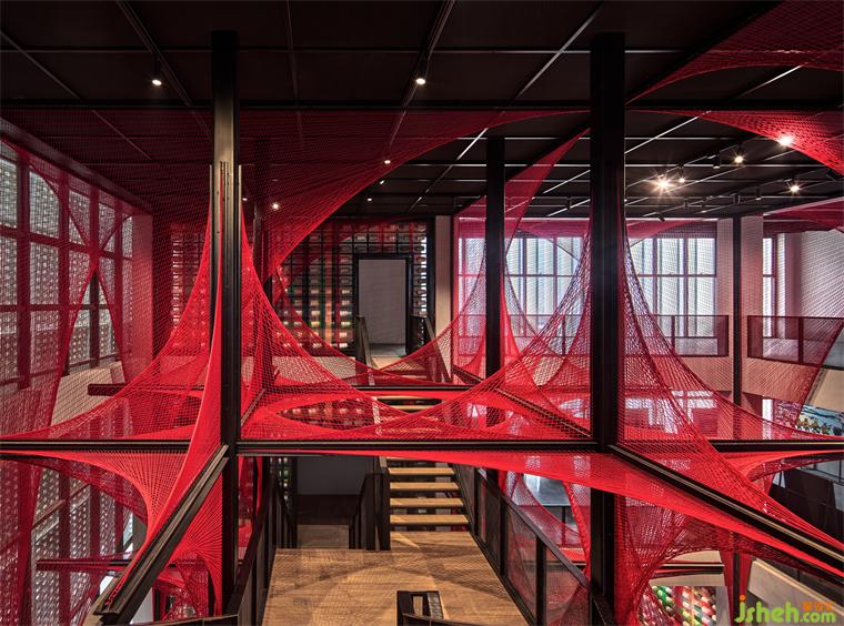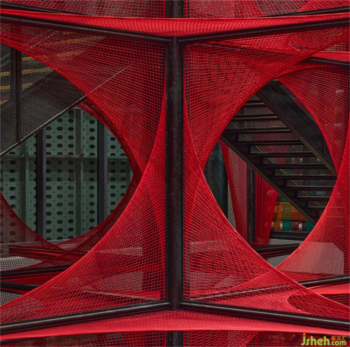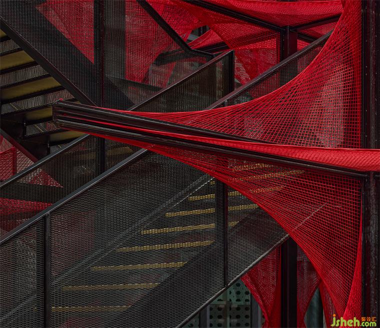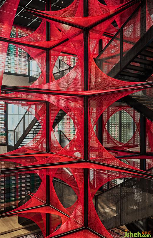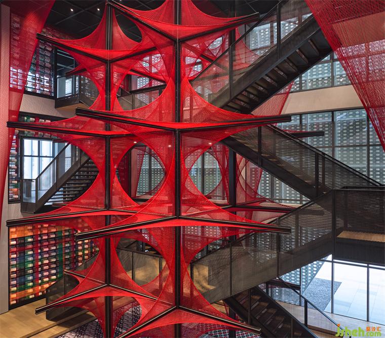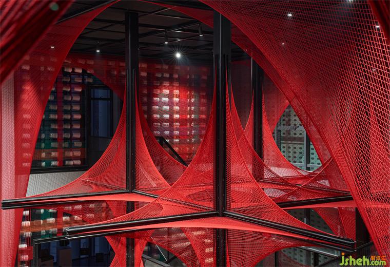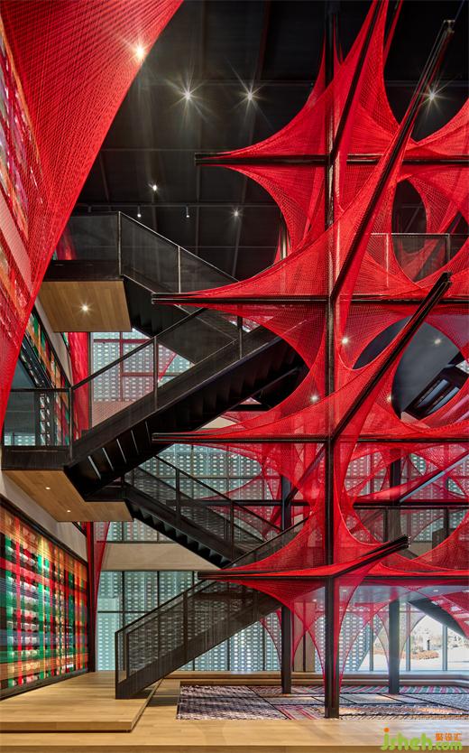 艺术博物馆装修设计在黑色骨骼与红色血液的虚实相交中,织机上的土家族血脉奔涌而来,生命之火从土壤中开出,“土家之花”绽放——散落在时光深处的原始生命踏入五光十色的商品社会,神采无极、能量毕现。