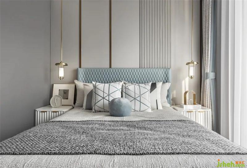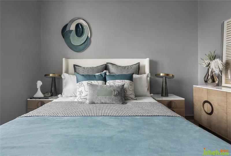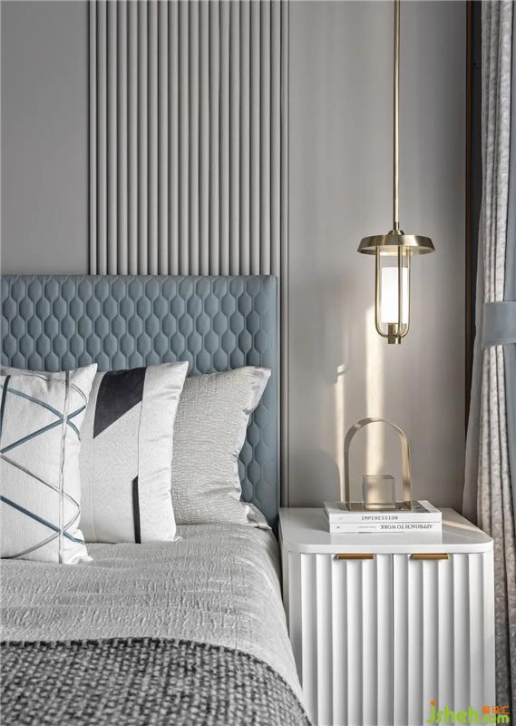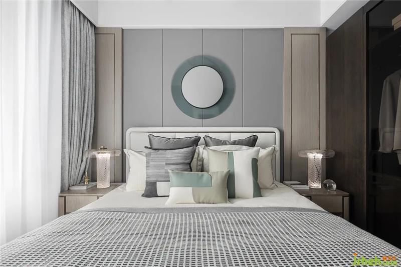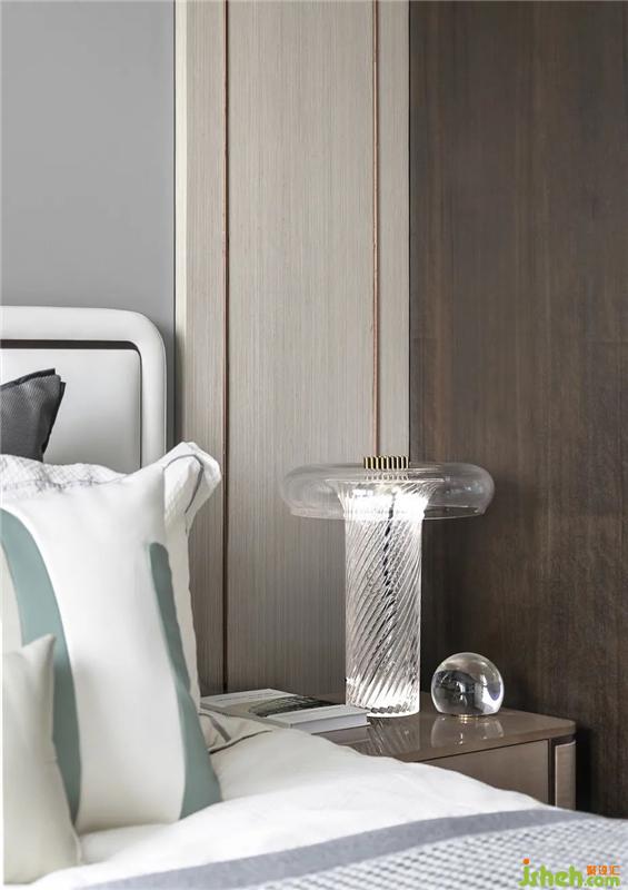 步入主卧,浅淡的米白、青绿、灰色,交织出温和平静的空间情绪。在考量空间比例的基础上,设计师透过巧妙的对称布局与空间构设,以圆与线条纹理的组合、玻璃与木质的搭配,令整体空间呈现出一幅协调的构图画面,又不失细节的质感。