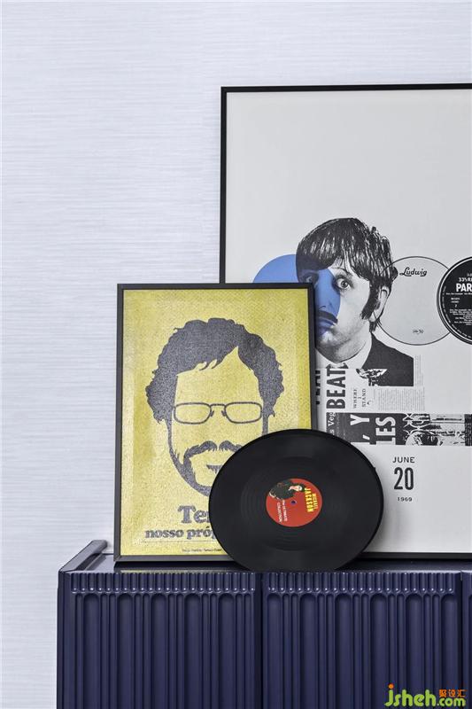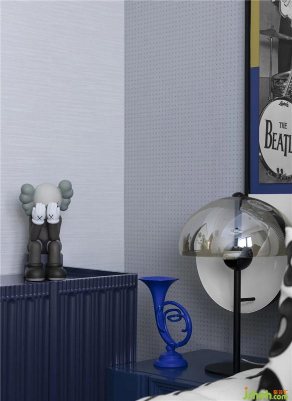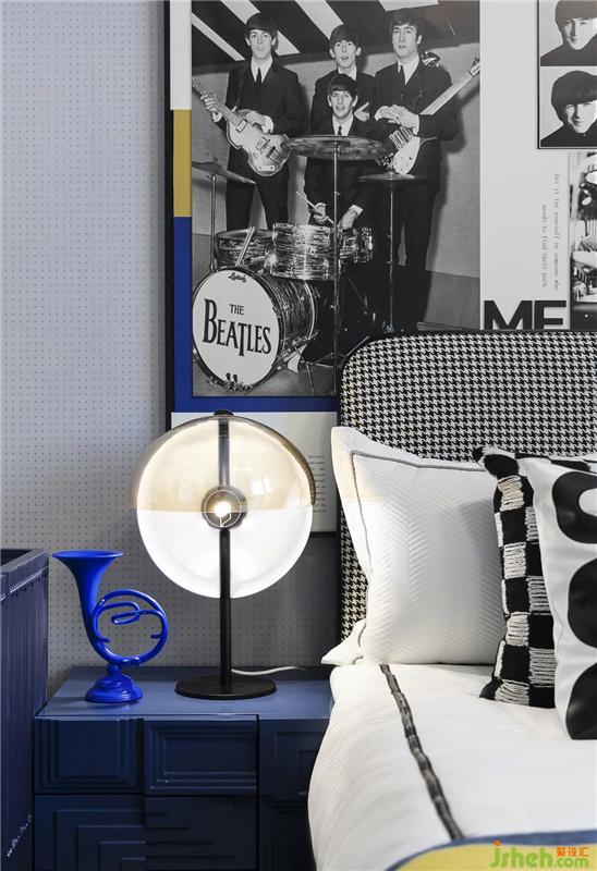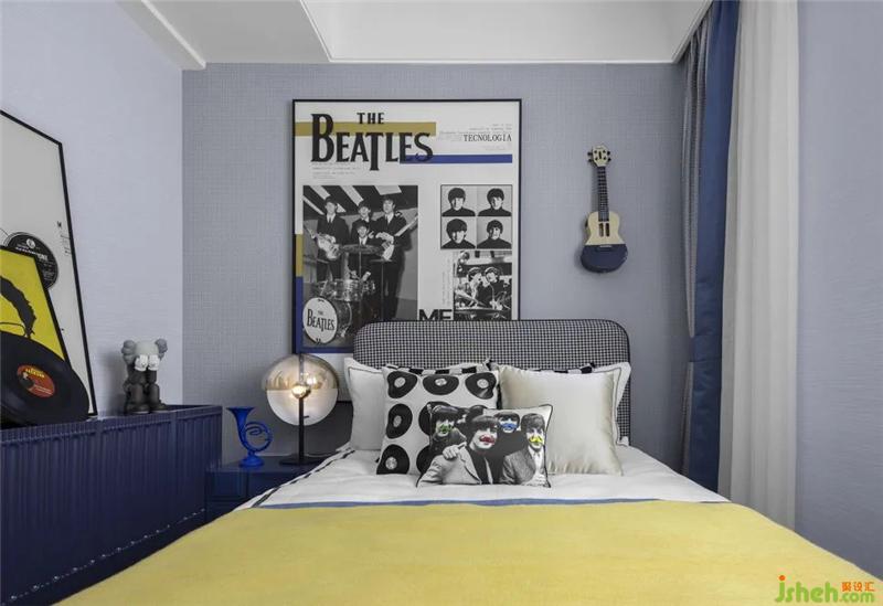 孩童对于艺术有着天然的敏感度,在普鲁士蓝黄二色对撞带来的视觉冲击下,样板房设计通过The Beatles乐队的元素演绎,以及黑胶、尤克里里、小号的陈设,为男孩创造了一个精彩绝伦的音乐世界,极大激发起孩子的无限想象力。