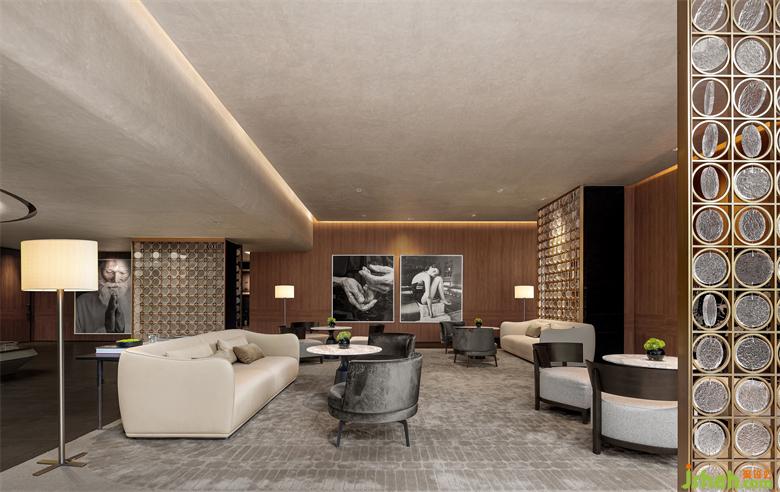 由于负一层的部分降板结构,导致空间高度受限,售楼处设计师利用光感提升空间高度,用温暖的装饰与柔和的光影营造了一种随遇而安,使得原本幽暗的空间更契合宝格丽风售楼处设计的柔和雅致。