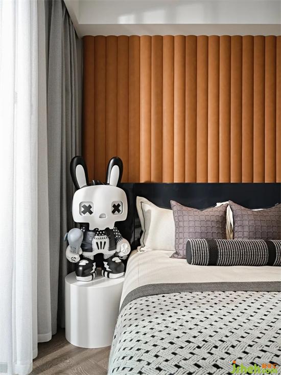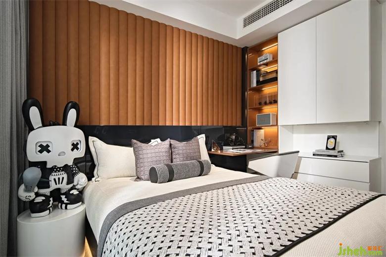 次卧整体延续主卧的设计风格,小巧的空间面积带更多的私密与样板间设计温馨感,同时也不失精致优雅的格调。