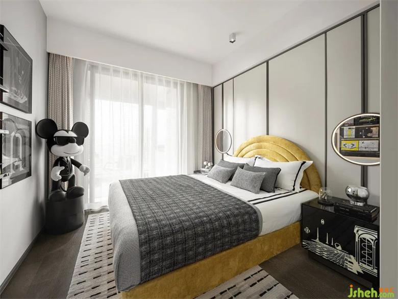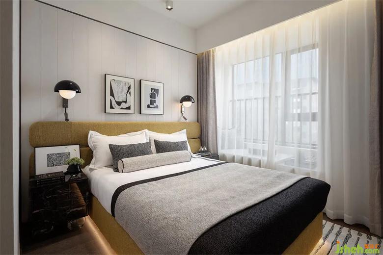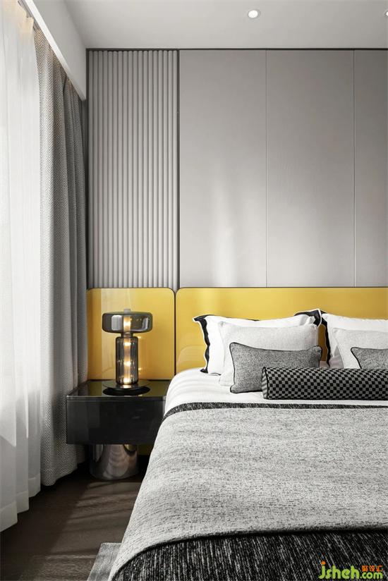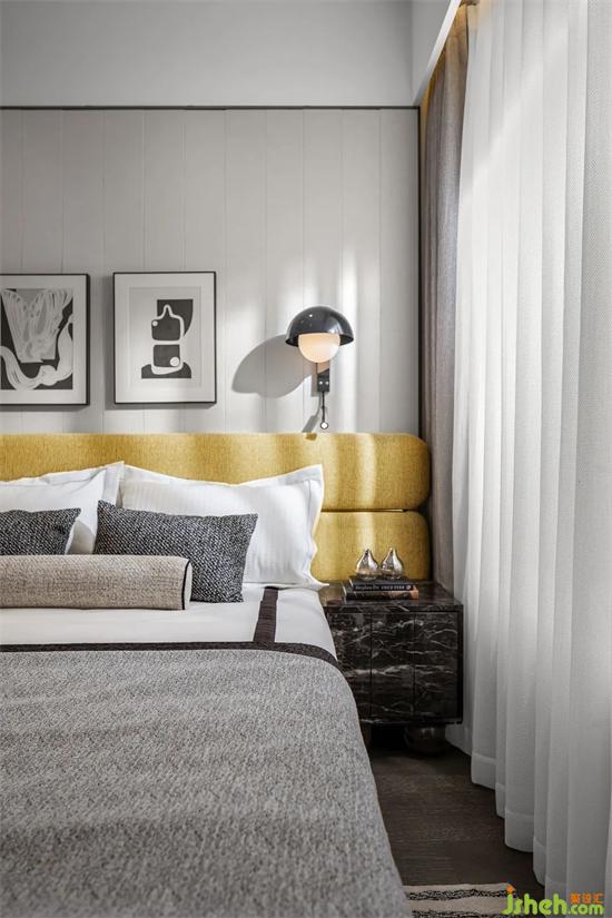 主卧设计融入当代生活的节奏与韵律。样板间设计床背景通过不同比例的线条进行分割,打破单调沉闷。亮丽黄明艳动人,极致灰低调朴实,两相互补,温柔不失质感,在经历生样板间设计活的风风雨雨,让人依然感受到“隧道尽头的亮光”。