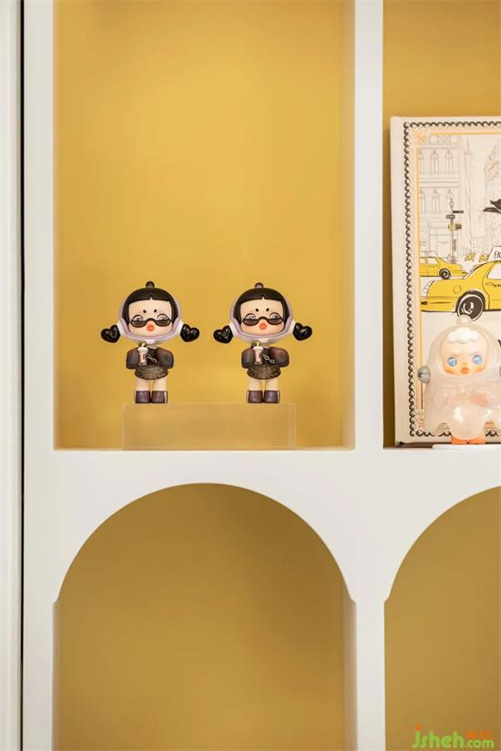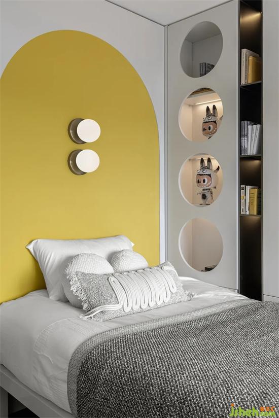 女孩儿房间采用多种不用形状的模块化设计元素,打造出活泼烂漫的童真与乐趣。样板间设计美观又实用的柜体设计,可以有序收纳孩子的玩具、图书,让分类收纳成为从小培养的好习惯。