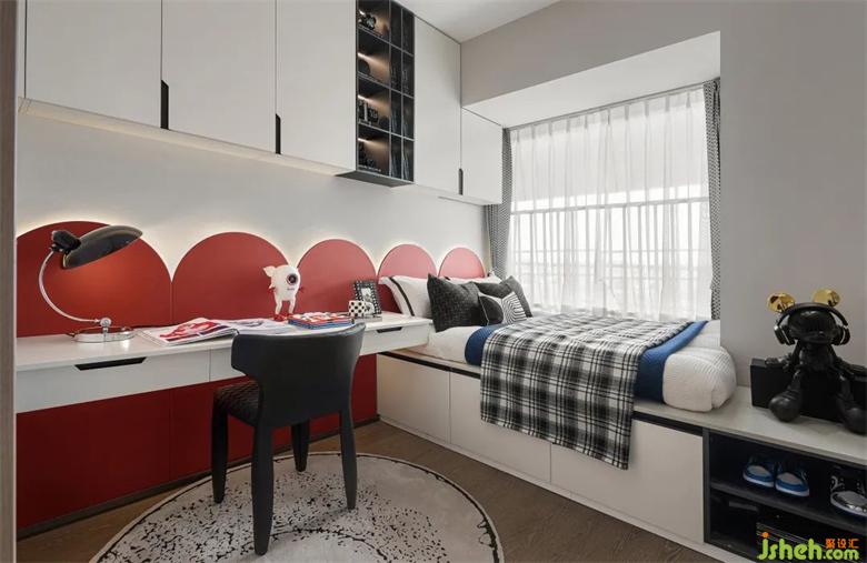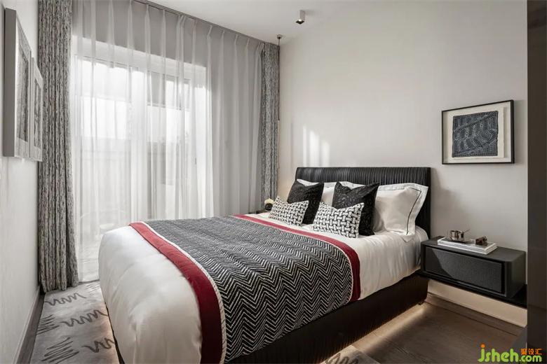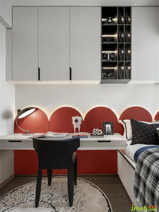小小的次卧,却承载样板间设计着最大的兼容性需求,以满足不同的使用人群、居住要求和生活习惯。简约的硬装、中性调的设计,没有过多的装饰,使其成为最具兼样板间设计容和弹性的空间。