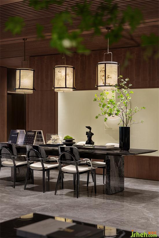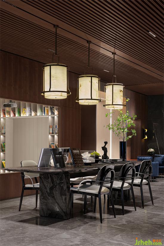 黑白色大理石桌案、真皮座椅、明亮而有设计感的线性排列吊灯,给予阅读区简约、理性的质感,给人以宁静而私密的体验,一片安静的独处时光。