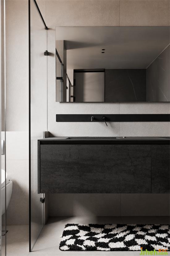 私人定制的浴缸内嵌灯带,灰色墙砖中和了龙头的黑色与浴缸的白色,泡澡也有了仪式感。