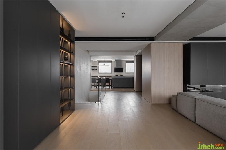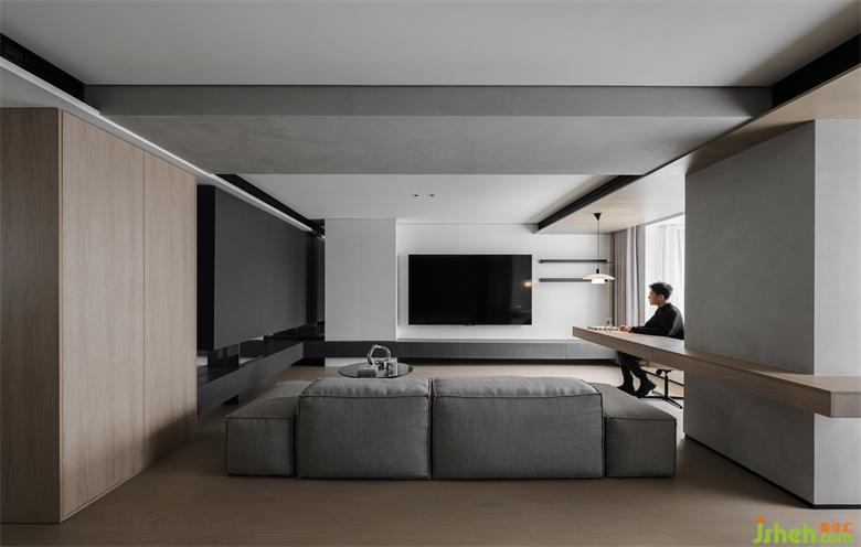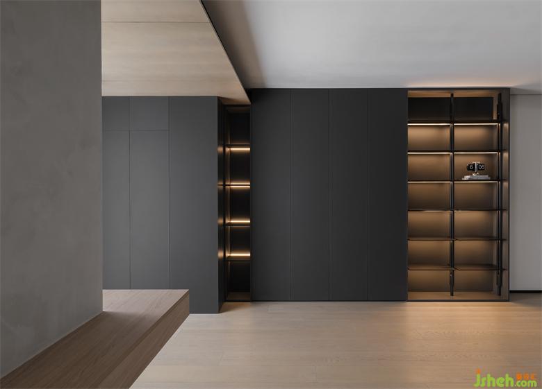 顶天立地的储物柜,开架与门板的结合,集美观与收纳为一体,理性框架与人文艺术感性碰撞,给空间带来更多趣味。家装设计通过家具的巧妙搭配,整合整个空间,创造出满足收纳、办公、休闲之需的多功能体块,不定义空间的属性,给予空间更多的使用方式和涵义。