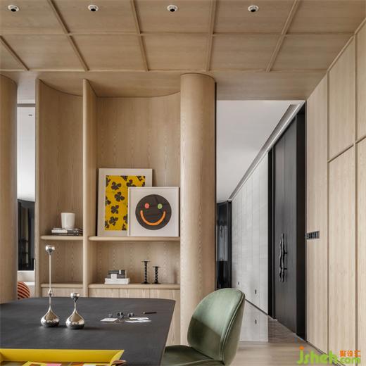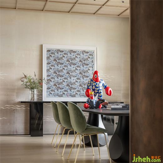 细致的家宅空间,如音乐般富有节奏韵律,有聚合之地更有静处方所。在休闲区与茶室之间,私人别墅装修设计师插入艺术金属体块将两个功能区分隔开来,圆弧之上,作有凹凸的线条,仿若雕塑,而体块背面又兼具着书架的实用功能。