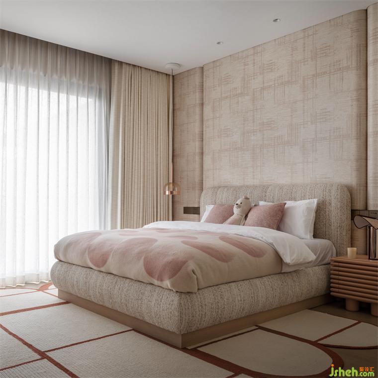 女儿房被赋予烟熏粉色的调子,渐变图案、温暖织物、方格地毯、Flos台灯,以及&TRADITION单人休闲椅,造型灵感来自天鹅收起翅膀的瞬间,这一切都让时光柔软细腻起来。