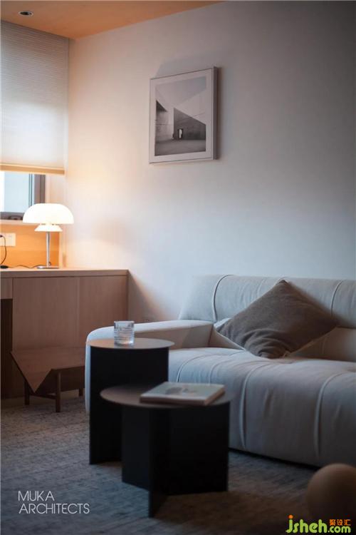 The soft furnishings are mainly light-weight furniture, which weakens the style and visual weight. The movable, round shape complements the tough spatial lines.
