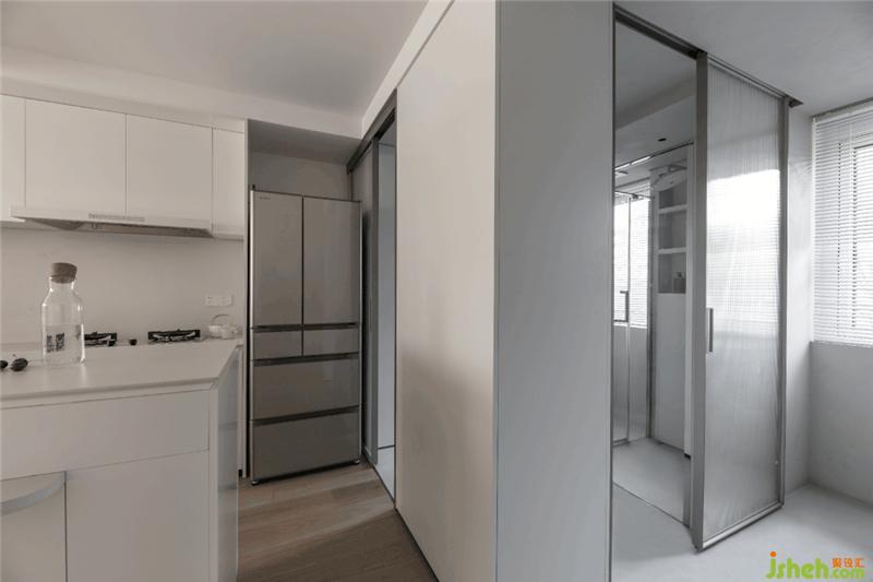 消除整面到顶的上海装修设计柜子对空间的压迫感,