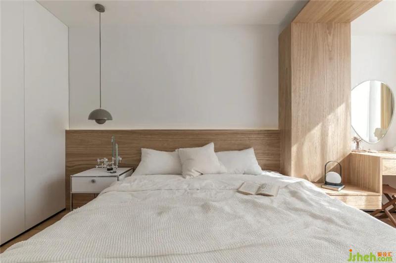 The dressing table near the window sill uses a wooden texture table that echoes the pine wood outside. The seasons have changed. The branches changed from snow white to brown, then greenish, and finally brown again. At this time, the family opposite the building built a new hedge . This large window of borrowed scenery can distract outside attention, but it also allows us to concentrate and watch. The two complement each other.