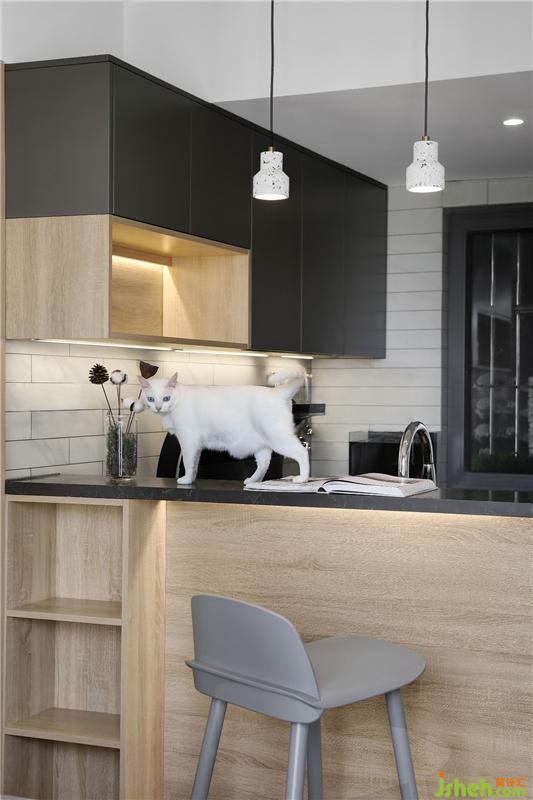 ▲小户型厨房,设计为开放式厨房,视野更开阔。