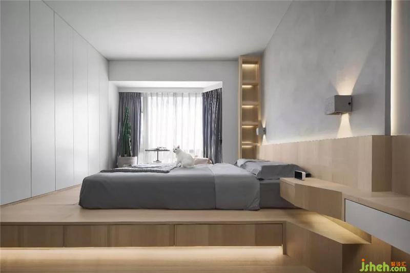 ▲超级温馨的台阶式榻榻米卧室,兼顾美观和收纳,增加线条式的灯带,通过灯光营造氛围,仙气十足!