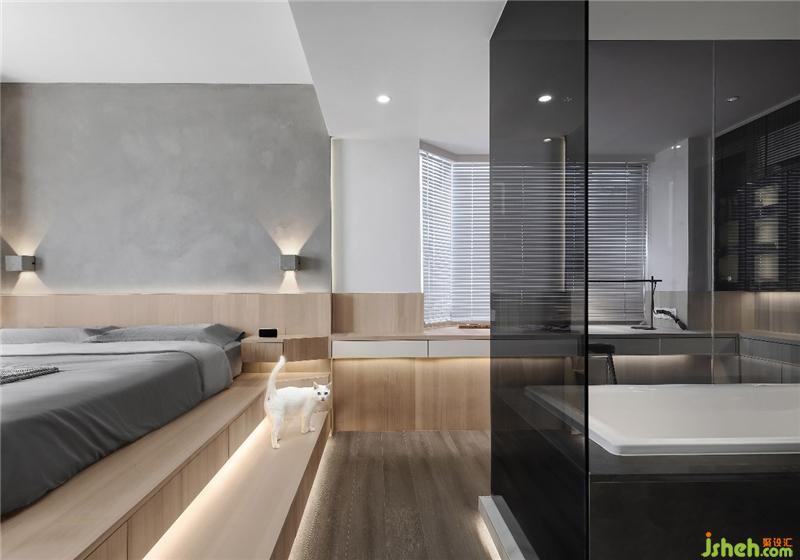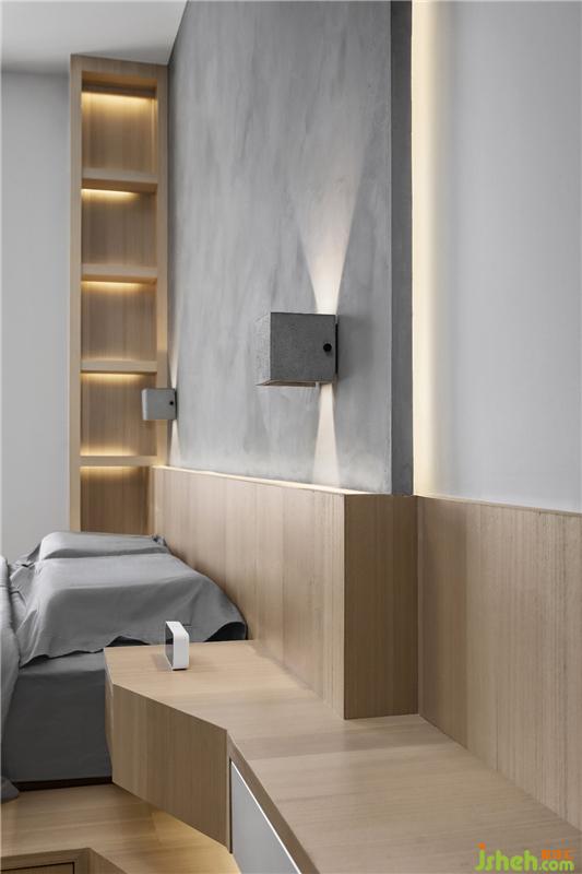 ▲床头柜和书桌做连体的设计,卧室和书房的连接更协调。