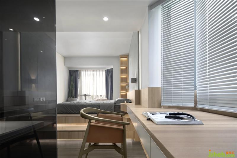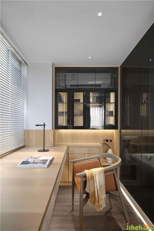 ▲光影下的书房,阳光透过百叶帘,走进房间,增添了一丝温柔!