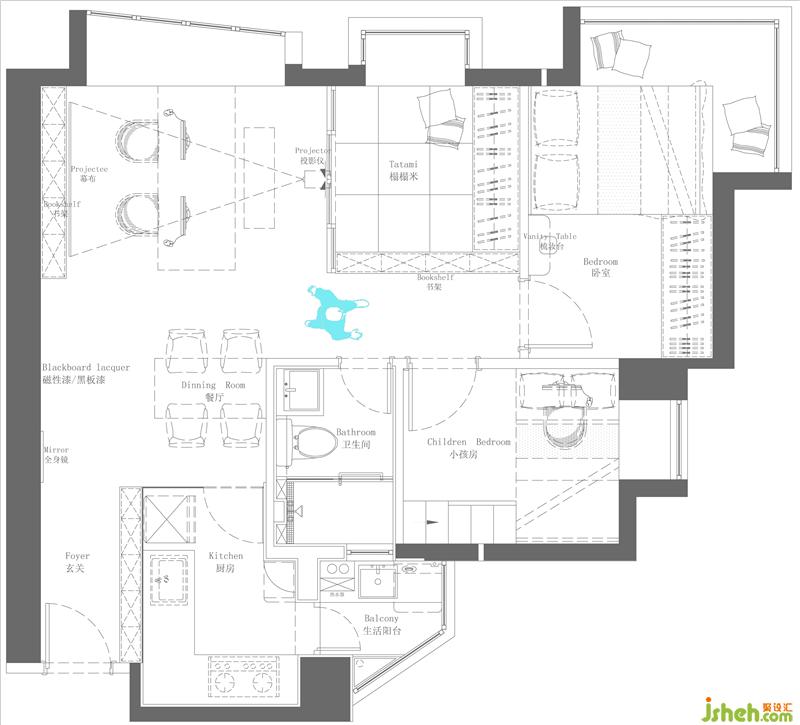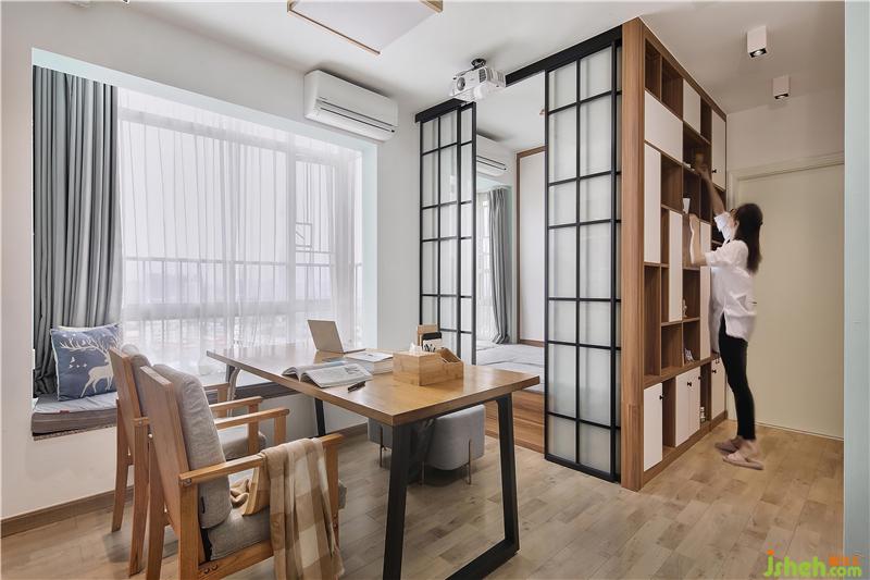 小户型空间功能属性一直是个研究课题。此户型位于深圳福田口岸,业主是从事金融行业,工作性质对于在家办公是有非常强的功能需求。在一线城市,年轻白领对于家的功能使用呈现出多样化的趋势,传统的客厅、沙发、电视已经不能适应现代年轻人生活工作需求,客厅、餐厅等功能已经越来越多元化和开放特性。在空间功能的规划过程中,我们尽可能的避免使用非常富丽的手法去塑造空间,从空间功能的本质出发,去探讨如何从尺度、光线、生活习惯去研究。室内设计师