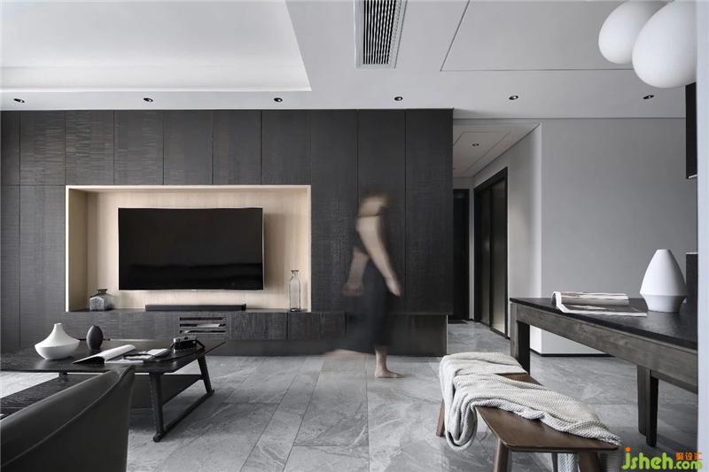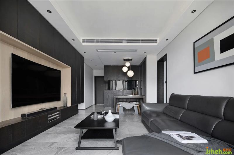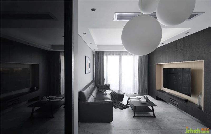 2、灰色为空间收纳柜设计,满足收纳的同时,尽可能不让空间压抑;
