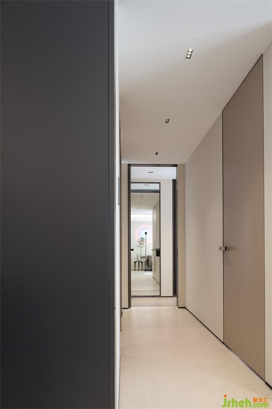 优雅的空间,犹如生活一样,需要精致的细节去诠释体现。一门到顶的设计,1.5mm隐形门框工艺,20mm暗藏踢脚线,体现对工艺的极致要求