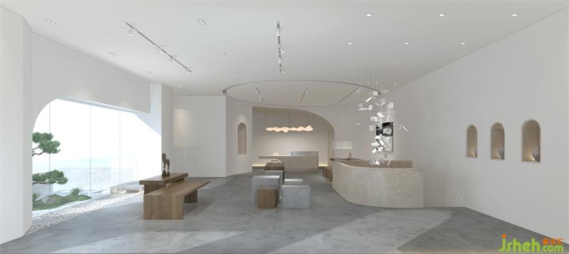 主要材质:水泥自流平、艺术涂料、玻璃、不锈钢