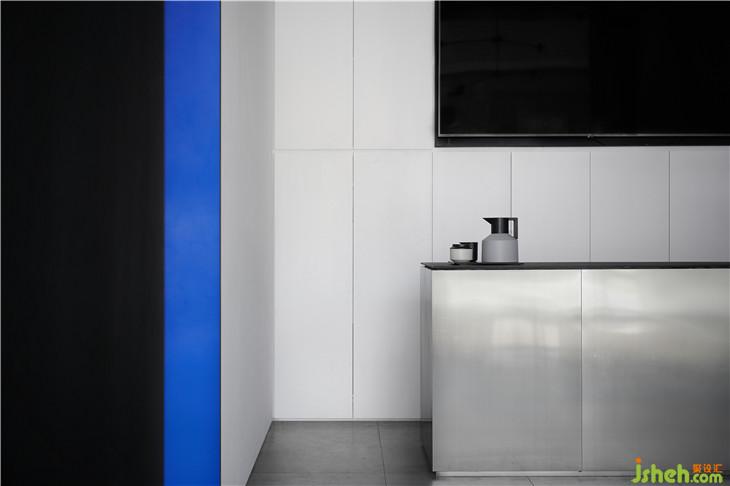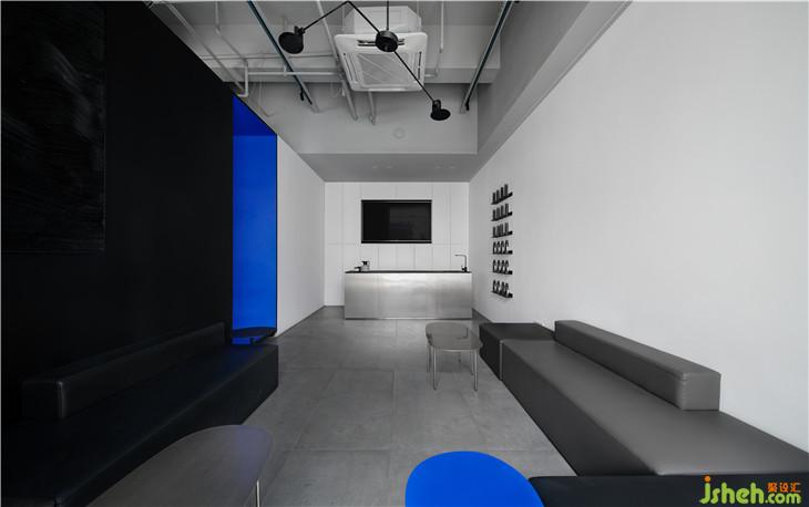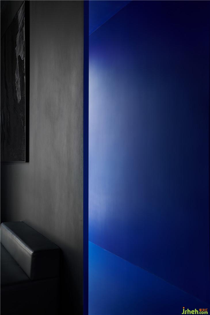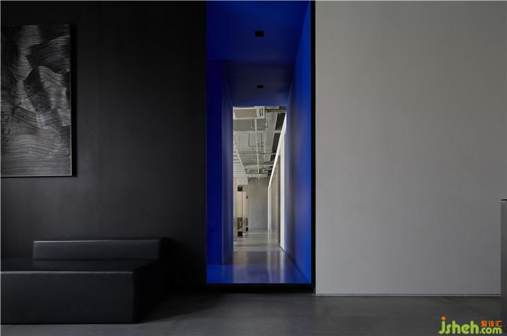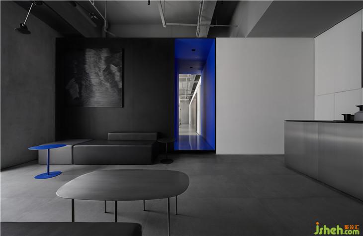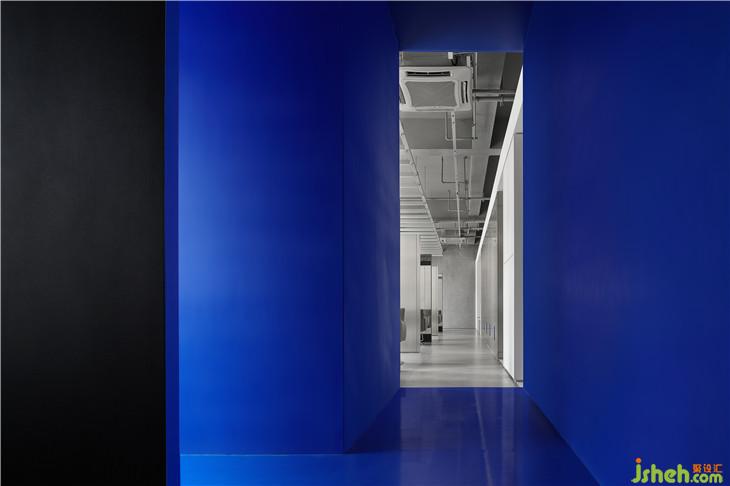 外立面采用粗犷的清水混泥土,不做冗长的外在修饰,彰显一种富有张力的空间美感;穿梭其间的那一抹蓝,明净而空旷,无限延伸至虚无,饱含顽强的艺术生命力。二者结合,一种特立独行的距离感油然而生。