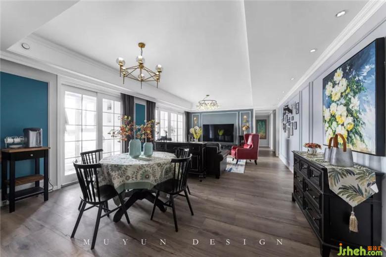 灰蓝色的主色调,用蓝绿和红色点缀,将业主的涵养、品味、经历、喜好以及对美好生活的热爱展现得淋漓尽致。