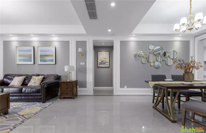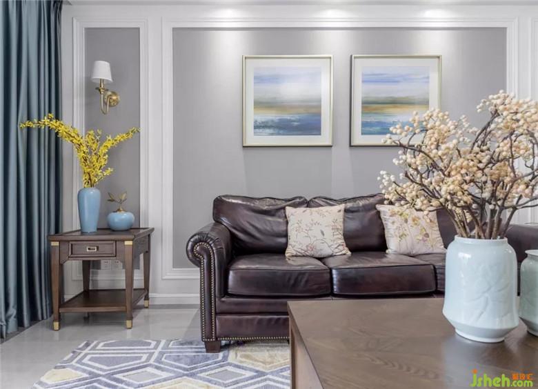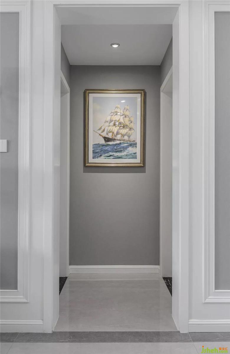 淡色系的背景墙辅以白色边框,打破单调的格局,变得多样化、生动化,还增加了立体感。取消繁杂的设计和装饰,简简单单的白色,让美式风格淋漓尽致。