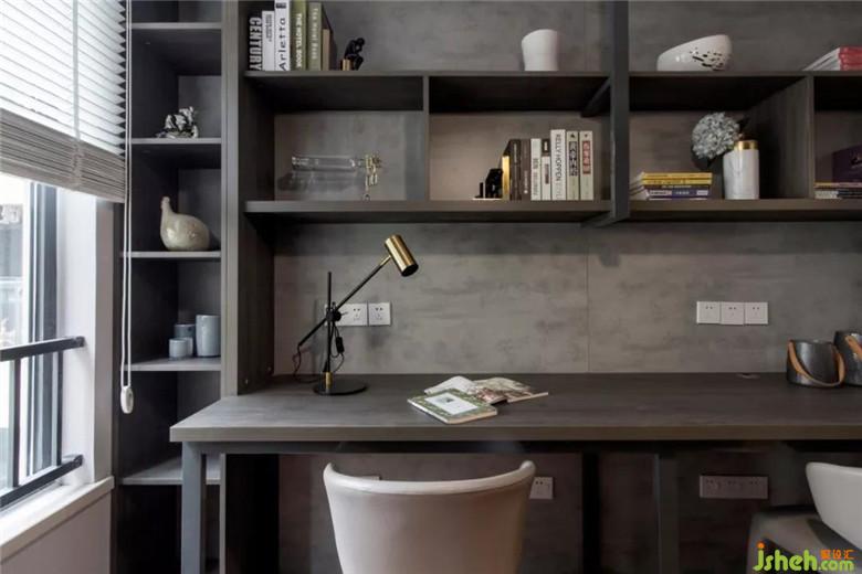 最爱的书房,后期家里补做了许多的柜子,深浅灰色搭配的书房,做了长长的书桌和收纳柜,2个人一起办公也足够。