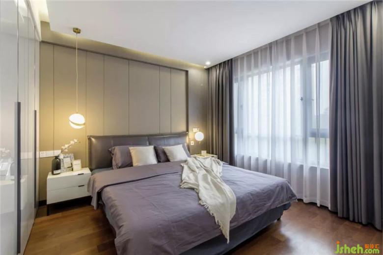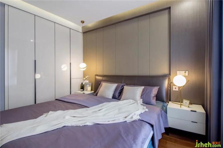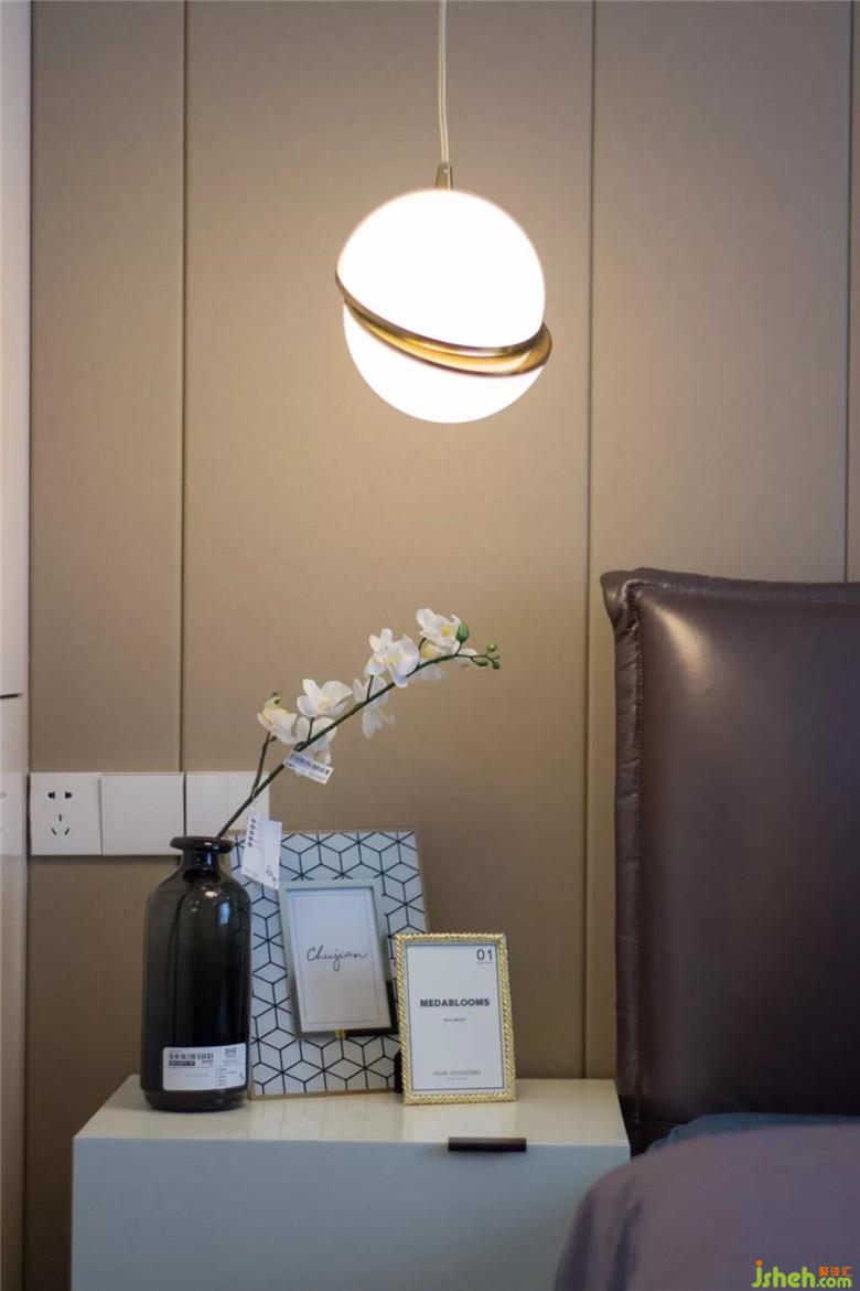 床头同样做了软包,时尚床头灯,用简洁的线条拉伸空间高度,金属质感打造低调的时尚感,整体空间优雅舒适。