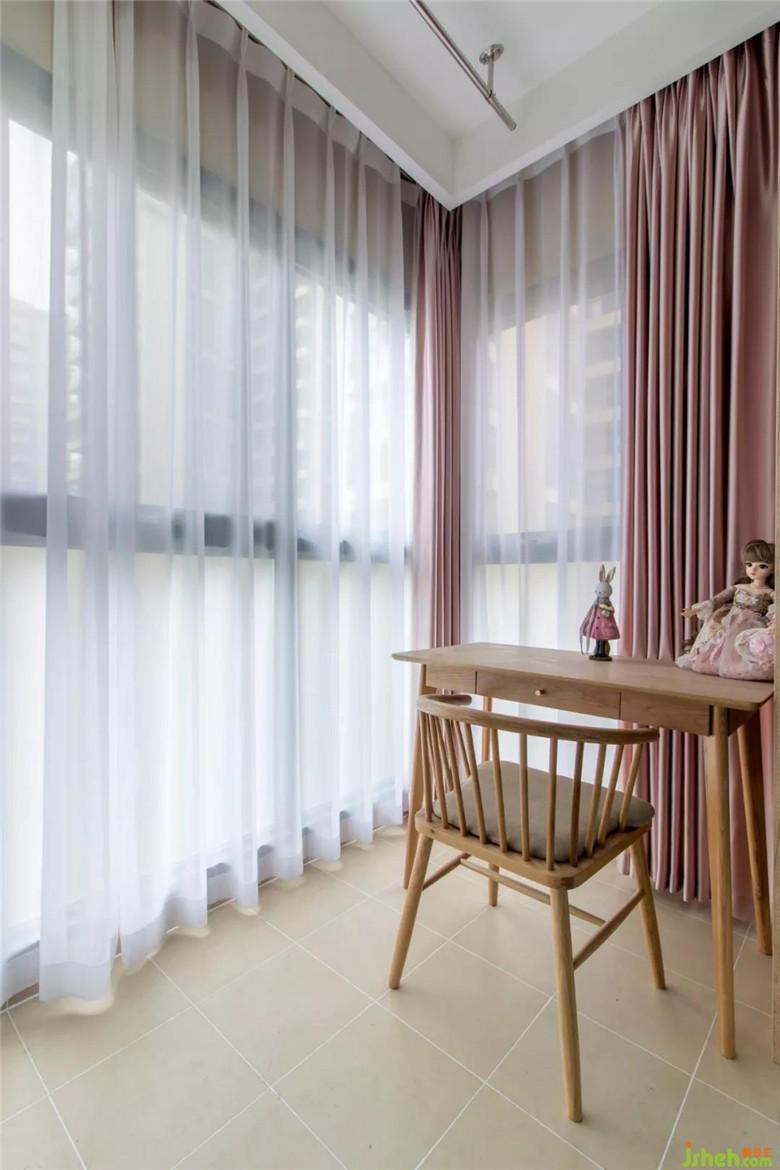房外的阳台,是整个阳台的另一头,放置了书桌,可以从女儿房直接出去,作为女儿的小书房。