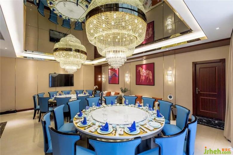在包间的空间打造上,以沉稳的驼色为主色调,搭配海洋蓝的餐椅,大面积衬托整个空间的质朴和纯粹。再以些许温暖的红色提亮空间的视觉,恰到好处的美感渲染开来。