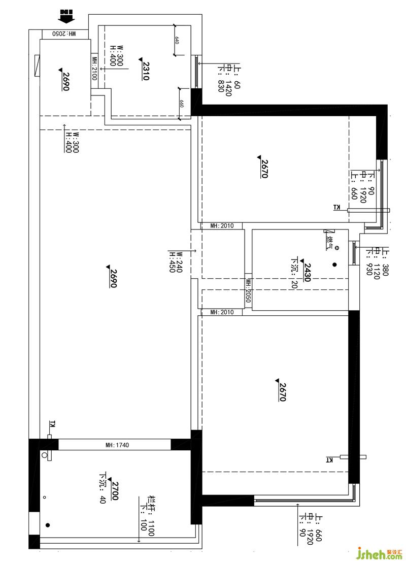 深圳室内设计师设计了玄关处入门左手边为一整面的镜子,用以出门前正衣冠。地面为三分之一工字铺的大理石纹路的地砖。整体采用的是无主灯设计。