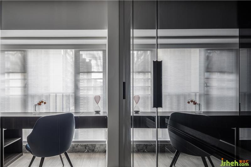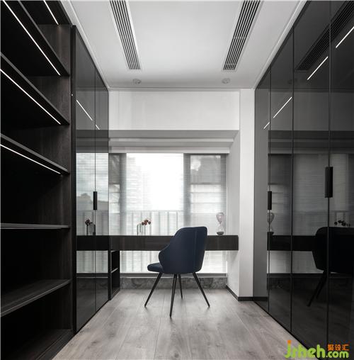 女主人有超多的衣物,为她留出了一个空间作为衣帽间,并且在靠窗处摆放了梳妆台,很好地利用了凸出的墙体,使空间更有整体性。