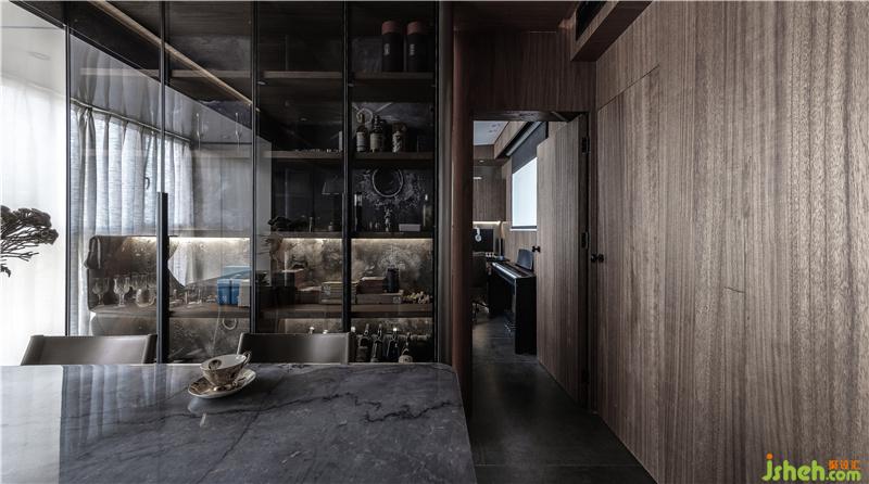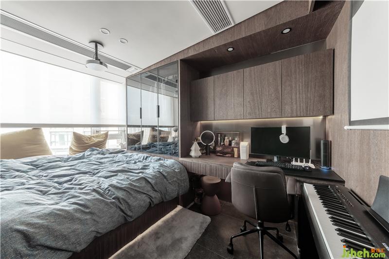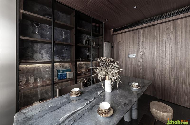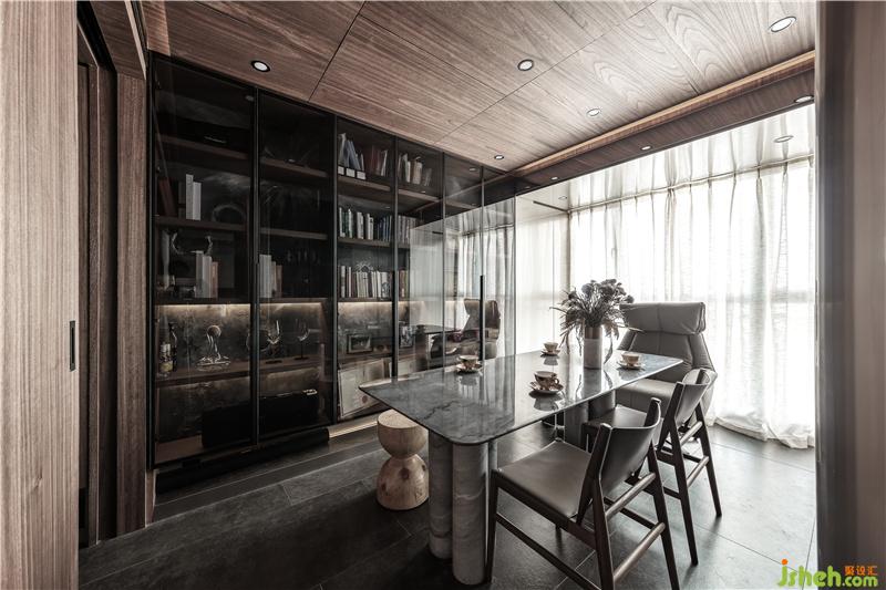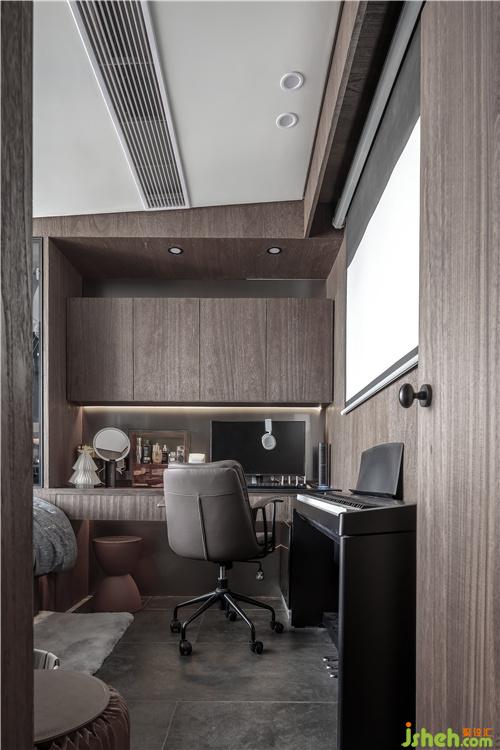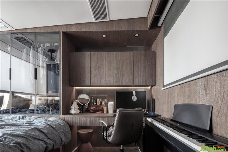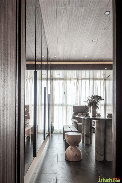 天花配以无主灯灯的形式来呈现照明氛围。天花四周留20mm的工艺缝,增加天花收口的细节。