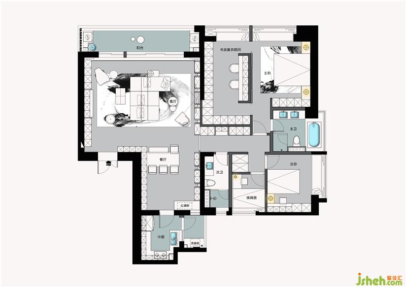 业主信息:一对小夫妻,希望可以有比较舒适的空间,轻装饰,重功能,设计过程中互相碰撞想法,形成了这个平面,设计是在空间中产生和谐的韵律和内在的秩序,事物有其秩序,设计亦然。好的设计不仅能实现与展示目的,更重新定义理想。