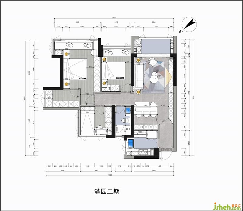 原来的户型厨房门对向客厅,后面做了个位移,移动至玄关左边。这样我们坐在客厅看电视或者聚会甚至学习,不会受到厨房的干扰。