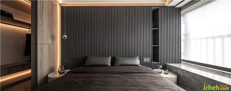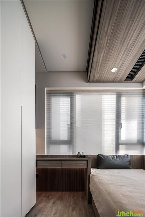 散发沉静而安稳的睡眠调性,其余立面及天花板则维持木色,延伸至白色的天花再到白色柜体,使整体视感仍然显透轻盈。