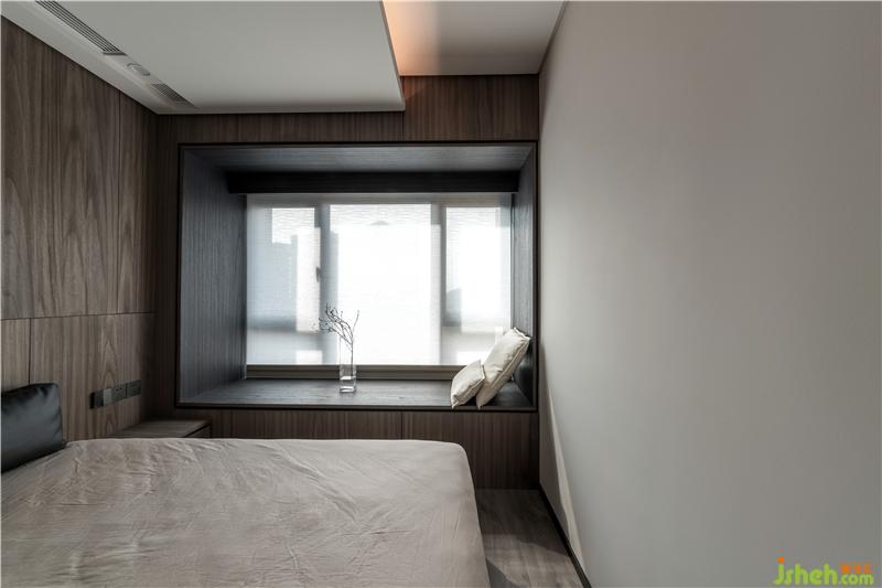 进入主卧房,天花做了斜顶的设计,让空间的线条多元化的同时增加了一些未来感。